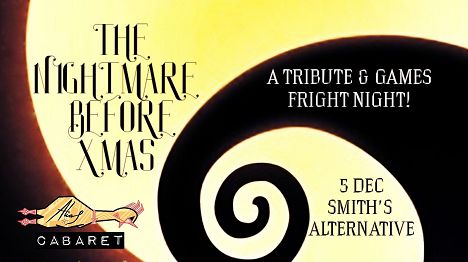 This is... Halloween? Xmas? Both? Both is good. As Mariah thaws & end of year speeds closer, let's get spooky with it for the last Alias Cabaret of the year. And it's gonna be a super charged night, not your usual cabaret, but a tribute to objectively the best holiday movie with odes from characters from the film, surprises from citizens of Halloween town, trivia terrors & twisted games to get the whole crowd involved (if you dare, lurking in the shadows to watch the mayhem also approved). Get your nostalgic stud collars & trap pants out for a 90s Goth vs 00s Emo Best Dressed contest. Extra points to the best bored eye rolls.