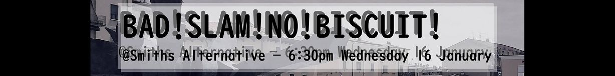 BAD!SLAM!NO!BISCUIT! IS THE POETRY SLAM IN THE SMITHS ALTERNATIVE THAT GIVES YOU 2 MINUTES ON STAGE WITH NO PROPS NO MUSIC YOUR ORIGINAL MATERIAL ALL FOR FIRST PRIZES!