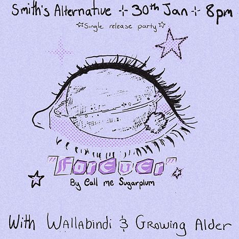 Call Me Sugarplum is an Indigenous singer-songwriter from Canberra who enjoys being obnoxiously purple. In the wild, she can often be found trying to fund her album through pure rage and busking outside of nightclubs at 3am. Alternatively, she can be seen trying to make sad indie-pop songs about mental health sound happy and danceable because being overtly sad seems too dramatic for her dramatics.