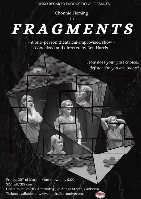 ‘Fragments’ is a new one-person improvised longform show conceived and directed by local theatre artist, Ben Harris. Staring Chonnie Fleming in her first solo improvised performance, this show looks at memory, time, and the choices we make, whether we understand or are aware of them in the moment, while developing into non-liner narrative structures. You may laugh, you may very well possibly cry, but you will certainly walk away with a deep profound experience of a life full of choices made, some regrettable, others, cherished.