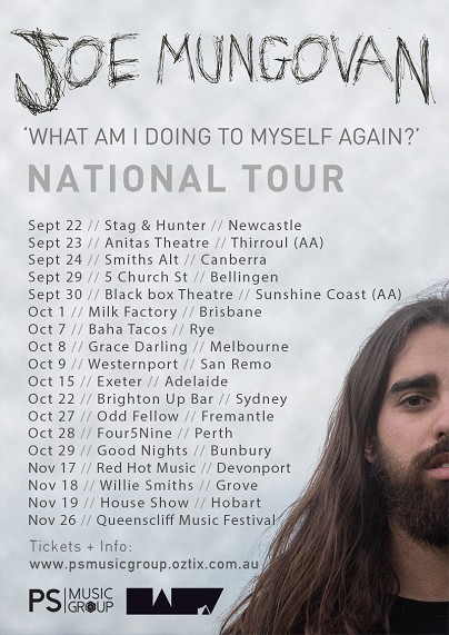 At the age of nine, a young Joe Mungovan would never have imagined that begging his parents “for a drum kit for Christmas” would pave his way into some of the most prestigious stages in Australia. The now folk singer/songwriter, crashed his skateboard at the age of 13, leaving him unable to play his drumkit and in a wheelchair for 4 months. Joe taught himself guitar and unconsciously developed a indie/roots style which blend together to produce his unique style. With attention to articulate lyrics, catchy melodies and rhythmic detail, Joe’s songs express his genuine emotion. His authenticity and passion is conveyed in his intimate live show, and is an experience not worth missing.