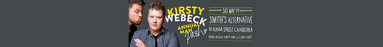 Kirsty Webeck has smashed her way into Australia's comedy scene with a succession of stellar one-hour shows. In 'Annual Man Pash' she explores the reasons why 'History Repeating' is the theme song of her life, in a show that will have you rolling in the aisles.