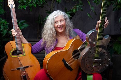 Kristina Olsen (Venice, California, USA & Vancouver, BC, Canada) is one of the most entertaining and compelling performers on the international acoustic circuit. A superb multi-instrumentalist as well as an award-winning songwriter with a big bluesy voice, Kristina has audiences around the world coming back for more. Her mix of powerful songs ranging from sassy bottleneck blues to lilting ballads to swing jazz to raunch and roll (as well as her hilarious storytelling) makes for a diverse and satisfying musical experience, on stage, on disc and in book.