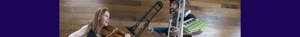 Vocal adventurer, multi-instrumentist and looping beatboxing songwriter Mal Webb sings his brain provoking songs using all sorts of vocal techniques, guitar, mbira, slide trumpet, trombone, chromatic harmonica and a loop recording pedal called Derek. And Kylie Morrigan (who's played with Orchestra Victoria and the likes of Stevie Wonder and Barry White!) provides violin and voice in a perfect balance to Mal's nutsness. Their arrangements are intricate and playful. Imagine Einstein, Dr Seuss and Paganini making pancakes.