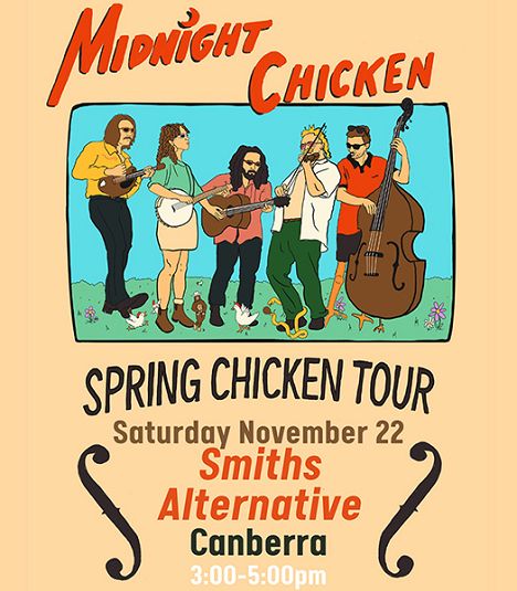Hatched and hand raised in Newcastle NSW, Midnight Chicken are quickly becoming a hot topic in the bluegrass and country circuits around Australia. Their bizarre take on bluegrass music gives birth to amazing renditions of traditional tunes and old classics as well as more modern tunes and originals that are sure to be enjoyed by everyone.