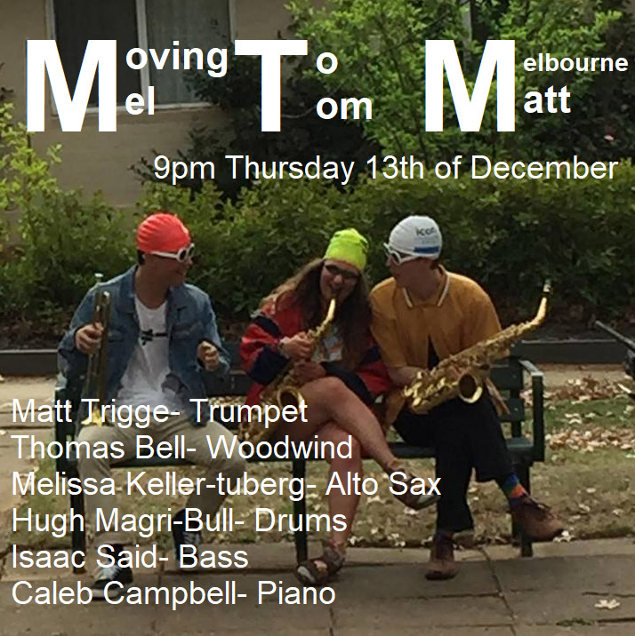 We’re very grateful to be a playing farewell gig at Smiths, (the heart of Canberra) to see CBR off (the heart of the nation) before we move to Melbourne to continue our studies in jazz.