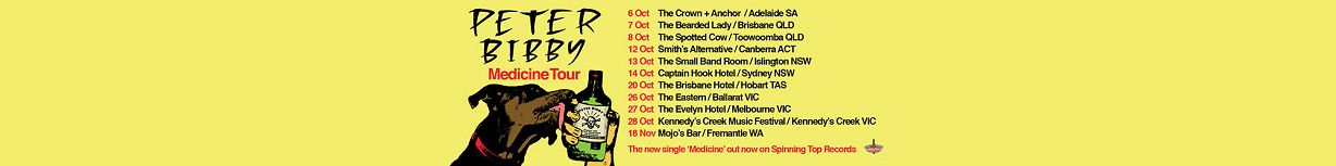 Fresh from a trifecta of rambunctious performances at BIGSOUND, Peter Bibby today announces a headline national tour in celebration of new single Medicine, out now via Spinning Top/Caroline. Beginning in Adelaide on Friday 6th October, Bibby will wander the nation armed with his first taste of new music since 2014.