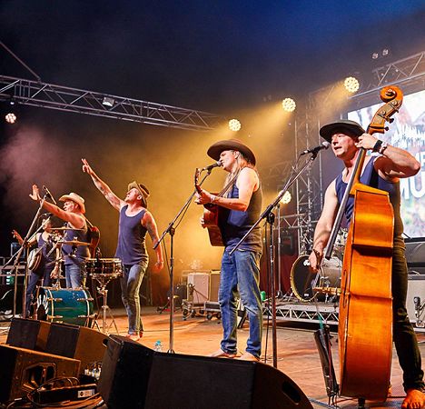 Still rocking their blue singlets, The Pigs are an unmissable hillbilly powerhouse!