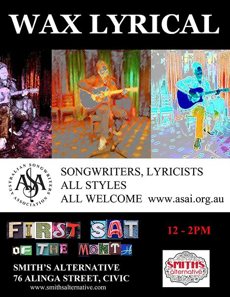 Australian Songwriters Association (ASA) Wax Lyrical is for original songwriters and lyricists to perform 3 of their original works. There is no need to book, just turn up with your instrument of choice. The event is unplugged, no amps, no mics. Songs can be any genre and roughly 3-5 minutes in length.