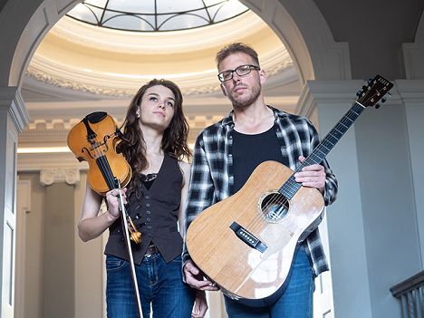 Much of Dan's original songwriting connects to his family heritage (a long line of Yorkshire fishermen), masterfully spinning stories into contemporary folk songs that are undeniably tinged with notes of the Americana, country, and bluegrass musics he grew up listening to. Whether an introspective ballad or upbeat festival dance tunes, Dan's distinctive warm and powerful vocals interlaced with Emily's dexterous meld of celtic- and country- style fiddle playing mesmerises a
