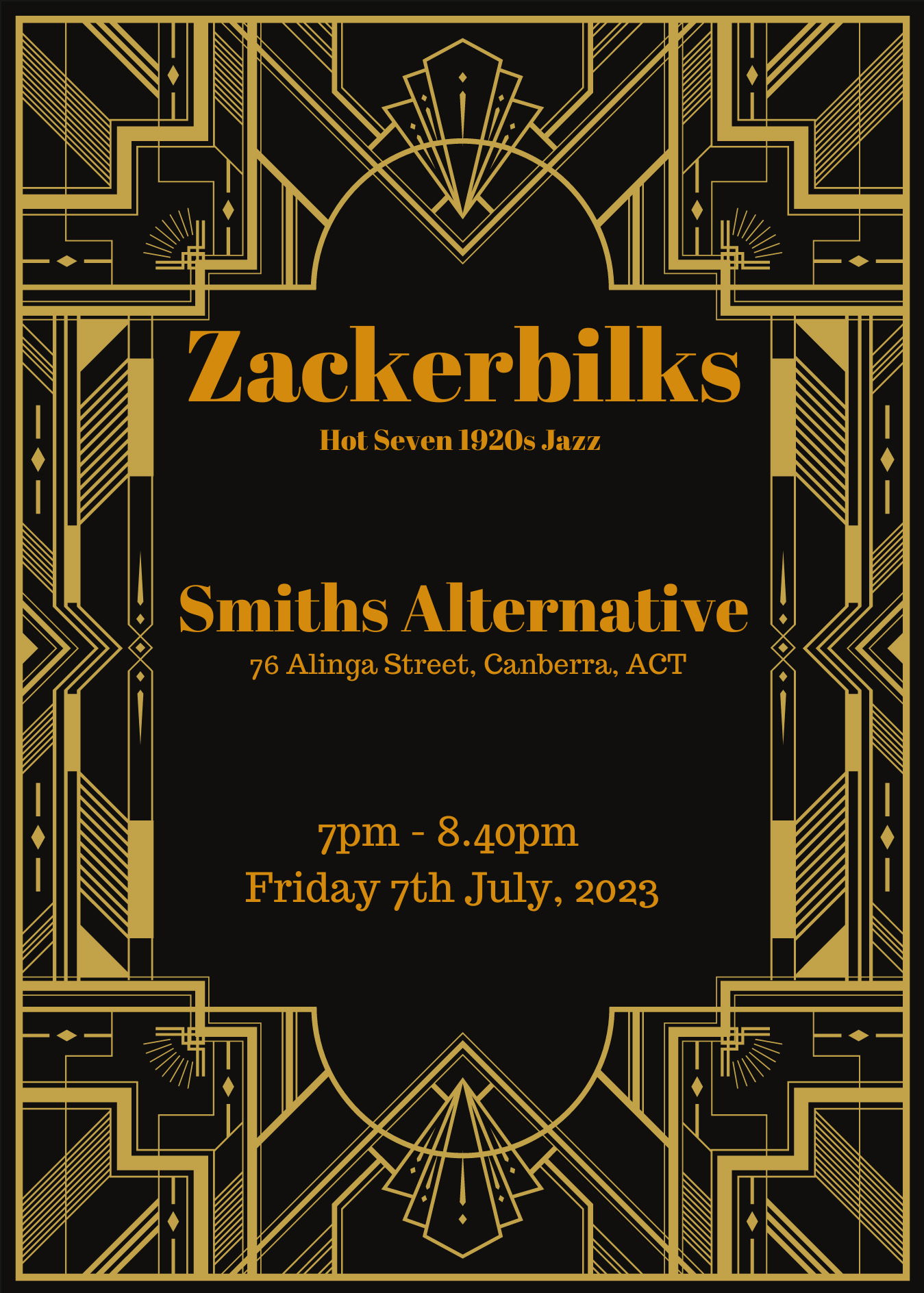 Zackerbilks are spreading their love of trad jazz to the world. Join them on a high-energy musical journey, that travels from the turn of the century to the 1940s. Dressed to impress, this dapper eight-piece group will have your toes tapping as they play a mix of trad to modern with a vintage twist.